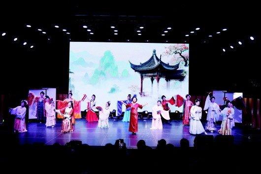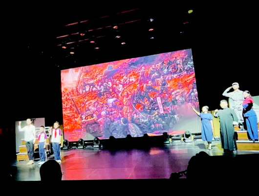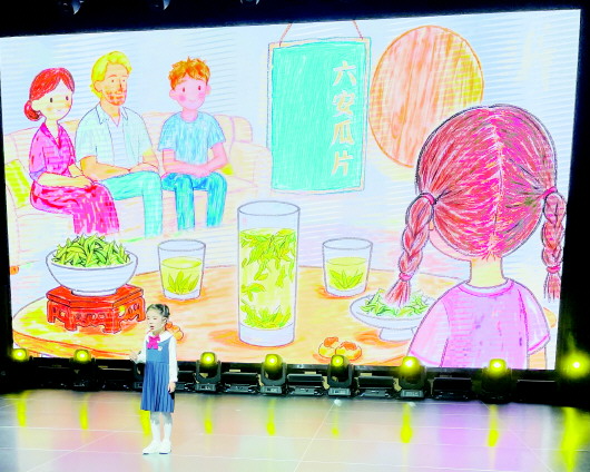 郑玮玮、李光文等老师声情并茂地联诵古诗词《水调歌头·中秋》《满江红》等,带观众穿越千年,仰望同一轮明月;吴声、王萍、周敏等朗诵者以铿锵之声诵读《红铁》《不朽》《英雄颂》,致敬英雄,句句灼心;耿京峰、毛蕾、程小兰、谭纪阳、孔维诗与雷锋路小学孩子们共同演绎情景朗诵《如果生活在那个年代》,跨时空对话,感人至深;16位汉服表演者盛装登台,音舞诗画《月满霓裳》,汉服翩翩、诗舞交融,如画如梦;紫荆小学学生邵雨杨带来的原创故事《请喝一杯六安茶》,用童声讲述家乡情,清新可爱,茶香仿佛溢出舞台。我们为何而被感动?是为巴金笔下《做一个战士》的勇气,是为欧震诗《秋天里的中国》的丰饶,还是《月光下的中国》那段祖孙同台的温情朗诵?也许都是。