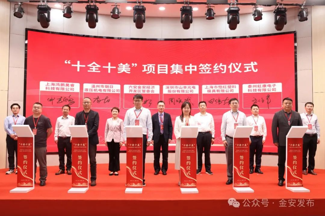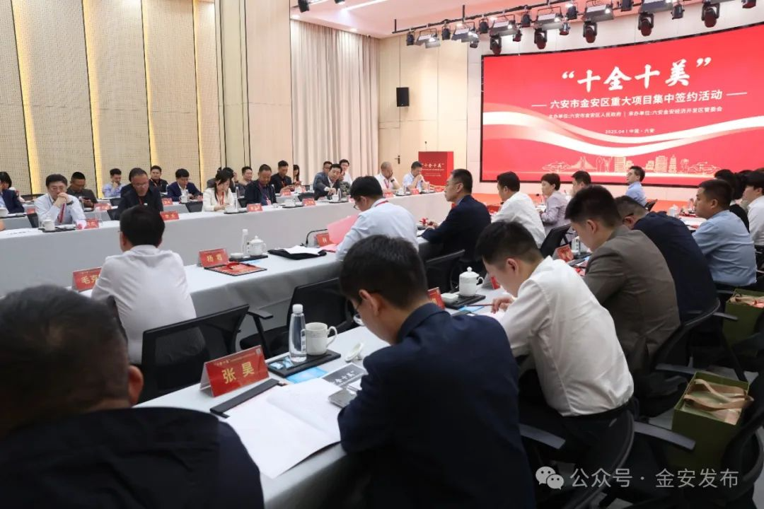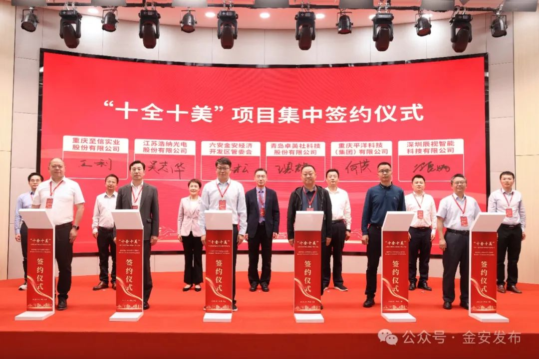 4月25日,金安区“十全十美”重大项目集中签约仪式在六安大学科技园六松创新中心举行,此次签约仪式聚焦电子信息、新能源汽车零部件、高端装备制造产业,集中签约项目10个,总投资23.7亿元,主导产业契合度100%,为六安产业升级注入强动能。