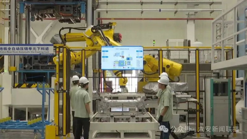走进安徽雄邦压铸有限公司生产车间,两台9800吨压铸机格外醒目,这是我省首次引入启用的最大万吨级压铸设备。这两台压铸机可以用于大型复杂零部件一体化成型,技术领先,刷新了区域智能制造能级。